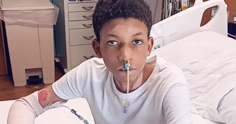 The 13-year-old suffered third- and second-degree burns on his stomach, chest, face, and neck, with 45% of his body from the waist up affected.
