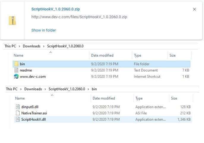 - Open the bin folder under the extracted file and copy ScriptHookV.dll to GTA 5’s primary folder (the location is mentioned above depending upon your download source.)