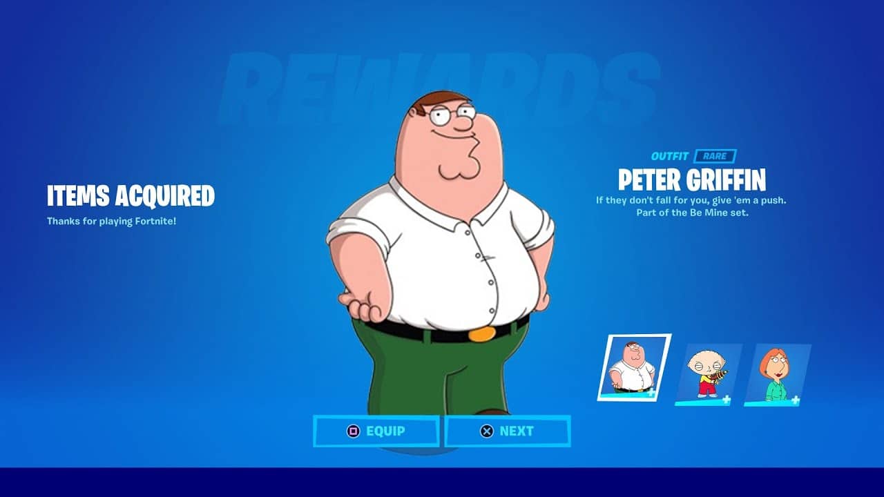 A well-known Fortnite leaker discovered a back bling texture over two years ago. This decrypted file revealed an episode of Family Guy in which Peter Griffin, in pain from a recent knee injury, tries to confront the infamous colossal chicken. Because of this, some players speculated that Peter and other Family Guy characters would soon be available as Fortnite skins, which would be an unusual addition to the game.
