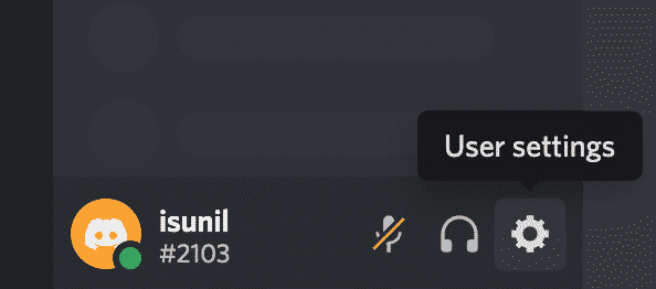 - Go back to the Discord tab, click the User Settings icon (represented with a ⚙️ gear) close to your username.