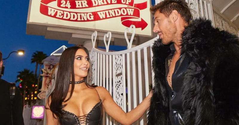 Kim Kardashian made waves as she officiated the impromptu Las Vegas wedding of Chris Appleton and Lukas Gage, donning a custom-made “cleavage dress” for the occasion.