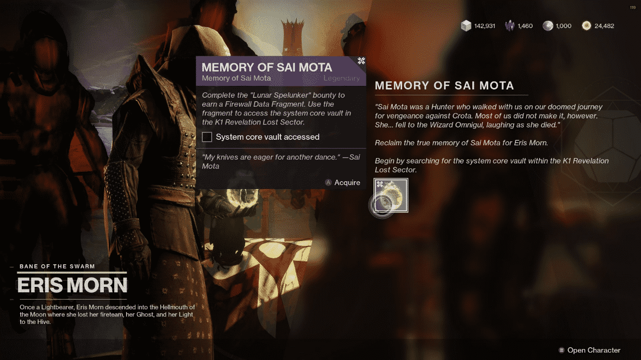 Memory of Sai Mota starts after you’re done with the Shadowkeep campaign with the Guardian banishing the nightmares of the First Crota Fireteam, invoking the memories of Eris.