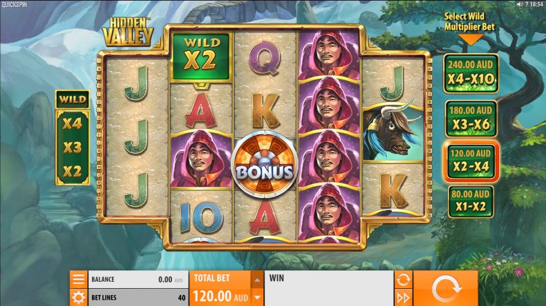 Explore the mystical realm of the Hidden Valley in search of untold treasures and magical wonders in this exciting new slot game. Immerse yourself in stunning visuals and an enchanting soundtrack that will immerse you into another world. With its innovative 3-4-4-4-3 reel layout and 40 paylines, this slot game offers endless possibilities for winning big time payouts! Keep your eyes peeled for Wild Multiplier symbols which have the power to multiply your earnings by up to tenfold.