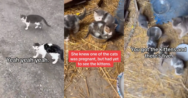 Cat distribution game strong in this woman’s barn 🐱💪 #catdistributionsystem #catsoftiktok #cattok #kittens #kittensoftiktok #barnanimals #goodnews