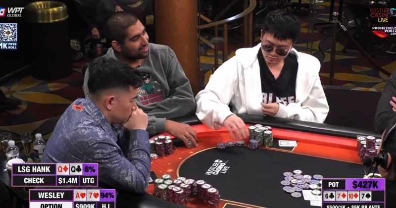 As the record-breaking hand unfolded, Wesley three-bet with A♦K♥, and Dwan responded with a raise to $100,000, holding Q♠Q♣. The back-and-forth continued as Wesley five-bet to $275,000, leading to a riveting showdown. The flop revealed 3♦8♠8♦, intensifying the stakes even further.