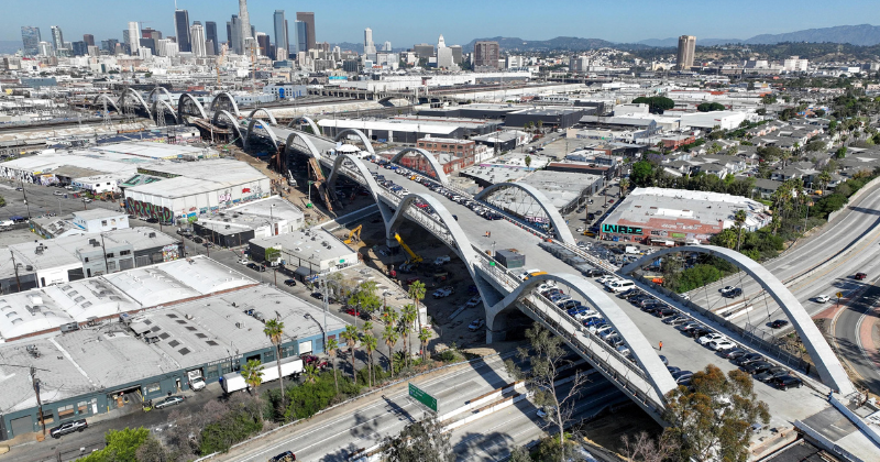 The 6th Street Viaduct, spanning 3,500 feet over the Los Angeles River, replaced an 84-year-old Art Deco bridge.