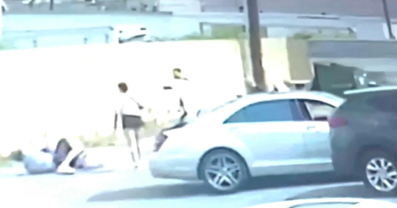 The disturbing scene unfolded as the victim was struck, possibly in the legs, before managing to escape before law enforcement arrived at the scene.